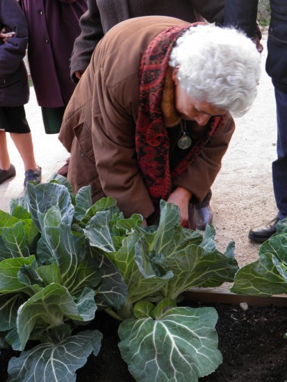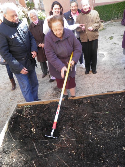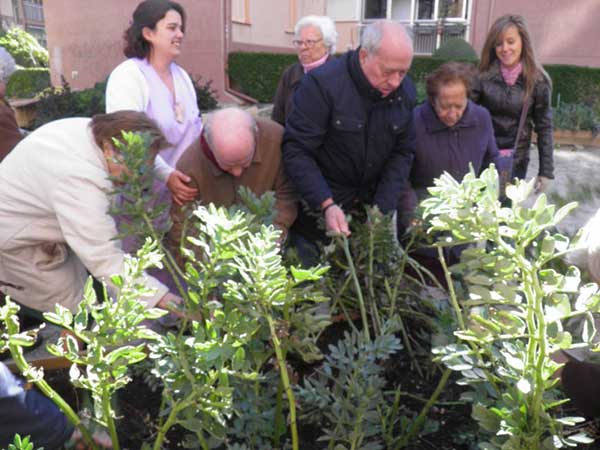 En el huerto vecinal de Virgen de Begoña, El Huerto de la Bego, además de jugar y aprender con niños y niñas los sábados, también disfrutamos de muy buenos ratos con los/las mayores del centro de día los miércoles por la mañana.