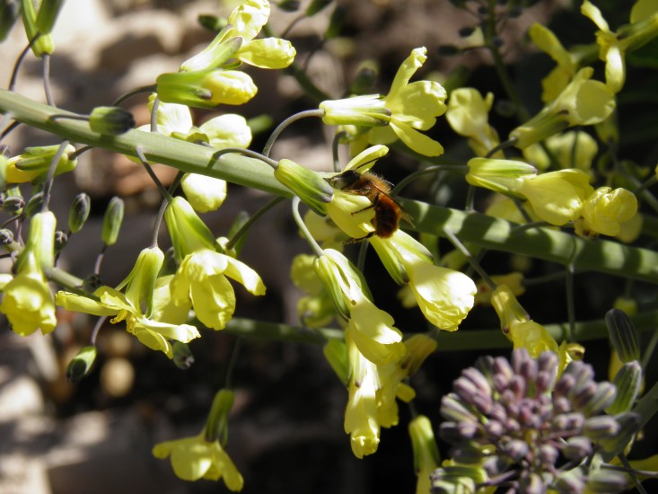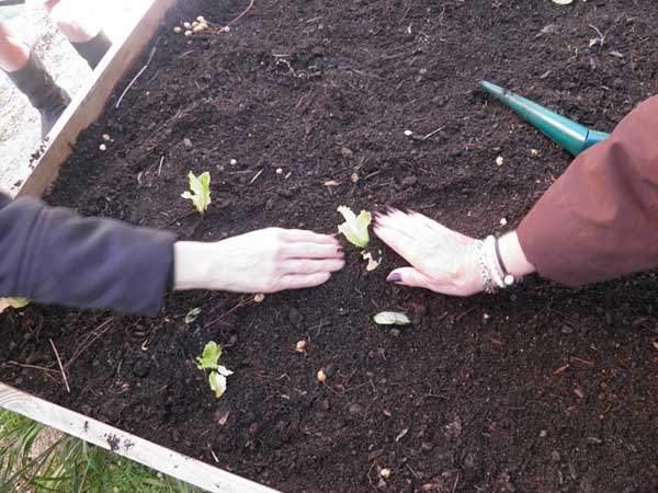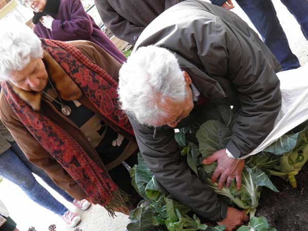 El primer día dimos un paseo de reconocimiento por el huerto. Olimpia nos contó recetas con las habas y las berzas, y repasamos todos los cultivos de otroño-invierno. También tuvimos la suerte de ver aparecer los primeros abejorros de la primavera visitando las flores del brócoli espigado. La semana siguiente recogimos algunas habas, las levantamos del bancal y trabajamos la tierra para comenzar a plantar nuestras lechugas.