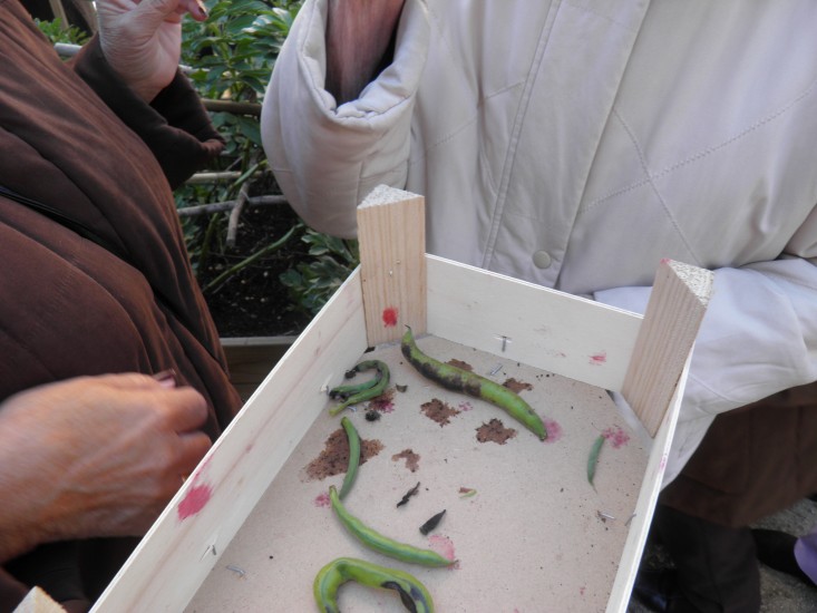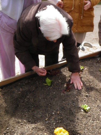 La ultima semana de abril pudimos dar un paseo al huerto, inaugurar el «Bancal de l@s abuel@s» y decorar con flores el huerto. Jugamos y reímos también con las adivinanzas del huerto. Florentina se animó y nos cantó un chotis al recordar las verbenas del pueblo cuando plantamos verbena en el huerto.