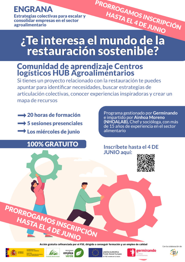 ¿Te interesa el mundo de la restauración sostenible? ¿Te gustaría aprender sobre estrategias colectivas en este ámbito? Si tu respuesta es sí, la nueva comunidad de aprendizaje en Restauración, Centros Logísticos HUB Agroalimentarios, del programa gratuito ENGRANA es para ti.