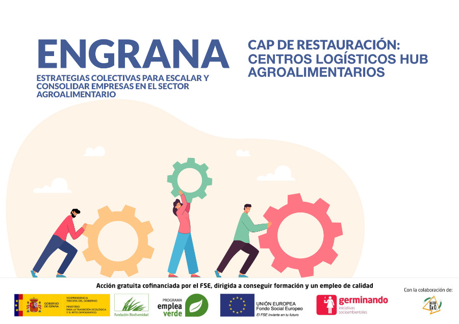 ENGRANA es un programa cofinanciado por el Fondo Social Europeo y la Fundación Biodiversidad, perteneciente al Ministerio de Transición Ecológica y Reto Demográfico. Está pensado para impulsar la gestión empresarial y la articulación colectiva de necesidades, con el acompañamiento de entidades referentes como Centro logístico KM0 (Madrid).
