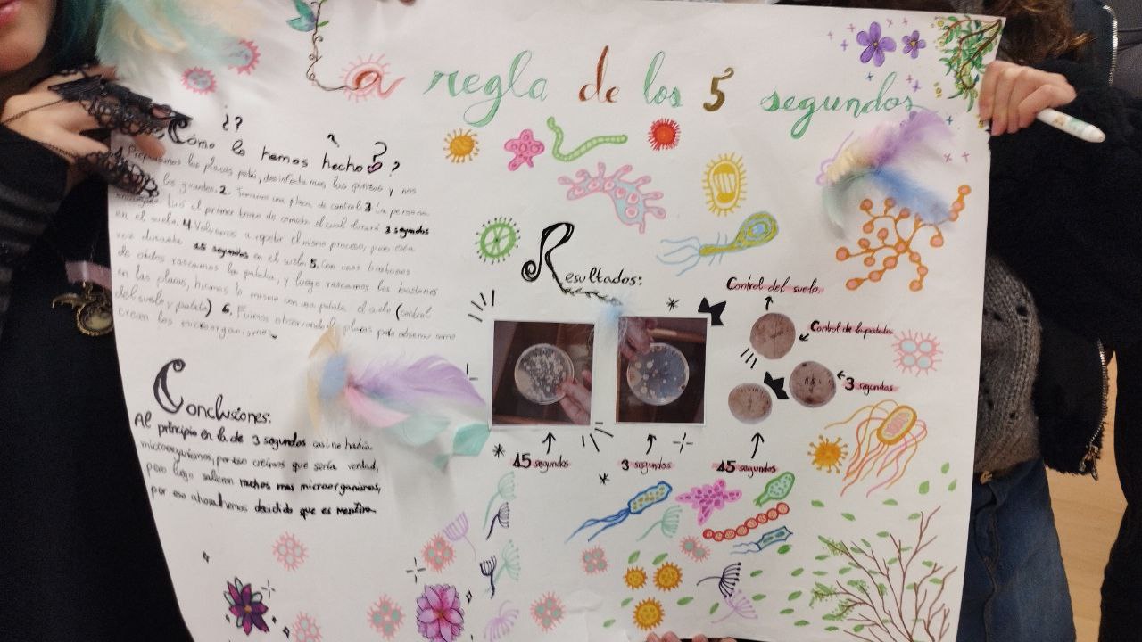 En los últimos años, y especialmente desde la pandemia, los expertos han advertido que los bulos sobre ciencia y salud han ido en aumento. Unos engaños que tienen su principal vehículo en las redes sociales y las aplicaciones tipo WhatsApp, herramientas muy presentes desde la adolescencia. Por ello, de una manera divertida y sencilla, durante el congreso se propuso al alumnado desmontar una serie de bulos utilizando el método científico para fomentar así su espíritu crítico. Entre otras falsas creencias, el alumnado probó que efectivamente el zumo de naranja no pierde sus vitaminas pasado un rato o que cuando se cae algo de comida al suelo quedará contaminada aunque se recoja rápidamente.