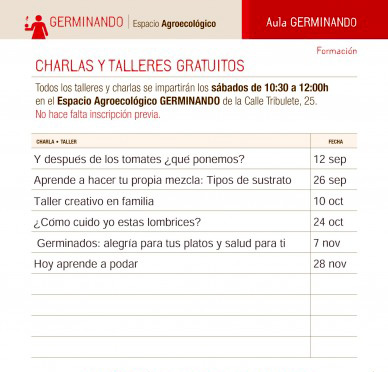 Ya tenemos lista la programación de talleres gratuitos para los próximos meses en nuestro espacio agroecológico.