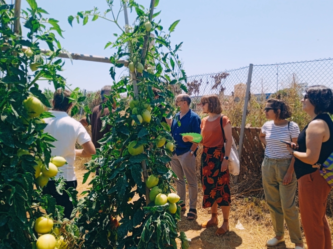 El viernes 27 de junio se visitaron experiencias inspiradoras. La primera, el  Centro Agroecológico de Distribución (CAD) de Horta-Cuina, situado en el espacio Ecotira de Mercavalencia. Allí, CERAI presentado el programa que realizan desde Horta-Cuina, que trabaja por hacer posible una alimentación basada en la agricultura local, incorporando productos ecológicos, frescos y de temporada en los menús de los centros escolares y grupos de consumo situados en estos centros. El proyecto sigue creciendo de manera significativa desde su puesta en marcha. Empezaron con 7 comedores escolares como proyecto piloto y ya han llegado a 48; para el año que viene esperan llegar a 60-70. No obstante, su objetivo no se centra tanto en aumentar el número de centros, si no en fidelizar los que ya están y que más parte del menú que elaboran se suministre a través de Horta-CuinaEl programa cuenta además con actividades de sensibilización en los colegios y un mentoring para que las empresas que gestionan la cocina y las direcciones de los centros puedan realizar un diseño adecuado de los menús y el seguimiento detallado de sus costes.