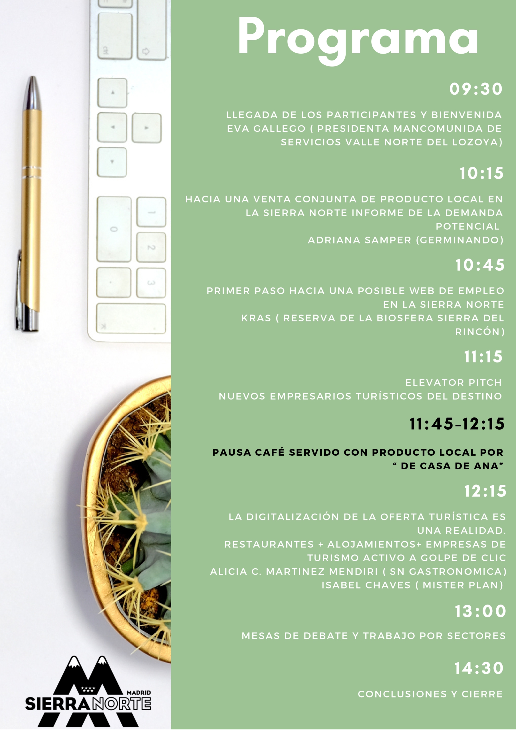 - Lugar: Coworking Puerta de la Sierra de Cotos de Monterrey. Avenida Puerto de Despeñaperros, s/n (Venturada).