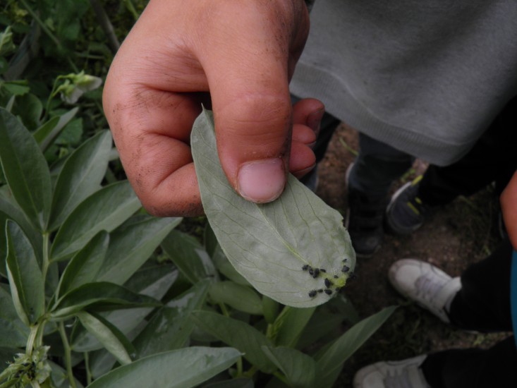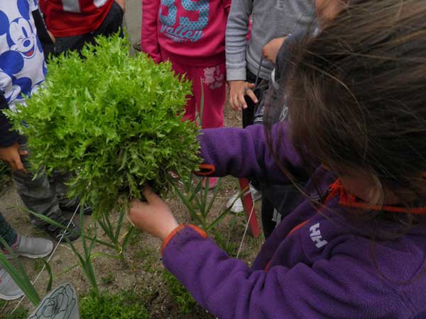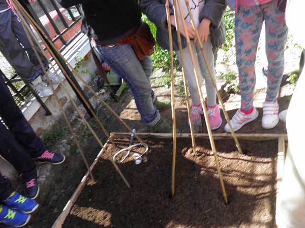 También hemos recolectado lechugas y escarolas para hacer hueco a los nuevos cultivos de verano, hemos medido superficies en el heurto y hemos visto lo que es un metro cuadrado, hemos construido un nuevo bancal y rellenado con nueva tierra, hemos comenzado a plantar los primeros tomates y pimientos, revisamos los pulgones de las habas y observamos a las hormigas pastoreándolos, y hemos hecho un maravilloso Hotel de insectos 5 estrellas.
