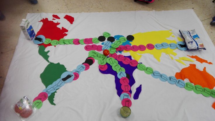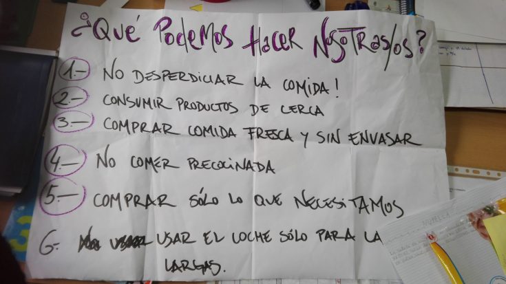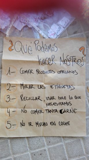 Y en los coles de San Fernando de Henares, junto al Ayuntamiento, hemos realizado durante todo el mes talleres sobre consumo responsable, en los que hemos hablado sobre la huella ecológica y social de nuestros alimentos, el etiquetado de los productos y las relaciones Norte- Sur. También hemos reflexionado sobre lo que podemos hacer nosotras y nosotros cada día para ser un poco más responsables con el planeta y el resto de personas que lo habitan.