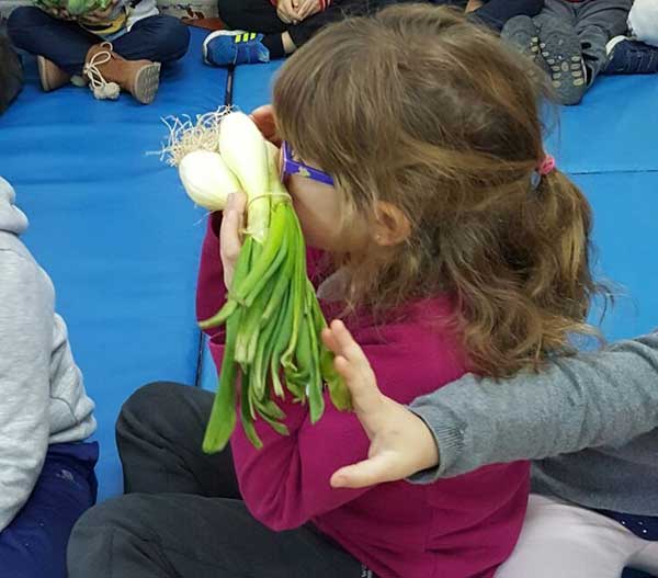 En los coles de San Sebastían de los Reyes, repasamos algunas de las verduras del huerto, oliéndolas, tocándolas, pesándolas, comparándolas y saboreándolas. También contamos entre todas y todos el cuento de “Diez semillas”, viendo algunos de los animales que pueden pasar por el huerto y cómo se comportan. Estos talleres son parte de la formación y apoyo al docente que llevamos a cabo junto al área de medio ambiente del Ayuntamiento de San Sebastián de los Reyes, dentro del programa de Huertos escolares del Municipio.