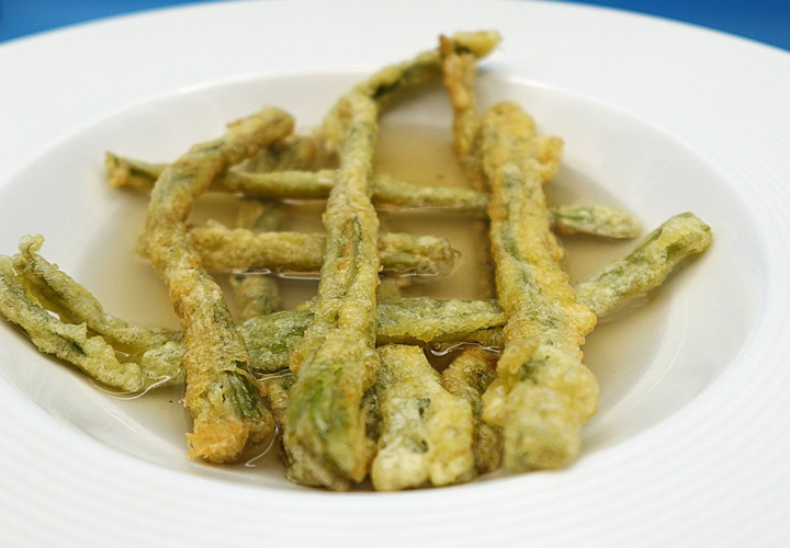 8. Meter las pencas de cardo dentro de la tempura e ir echándolas dentro de la fritura, poco a poco, hasta que queden bien doraditas.