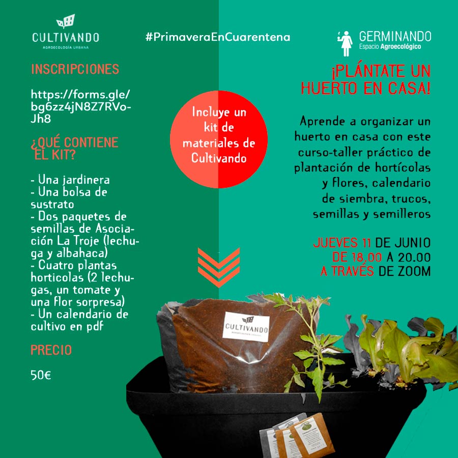 VALOR AÑADIDO: Lanzamos este taller entre la cooperativa Germinando y Cultivando, la tienda de barrio de jardinería y productos hortícolas del centro de Madrid, que se preocupa porque todos sus proveedores sean ecológicos, éticos y responsables; mientras que la filosofía de ambas entidades está atravesada por la agroecología y el ecofeminismo. ¿Qué más puedes pedir?