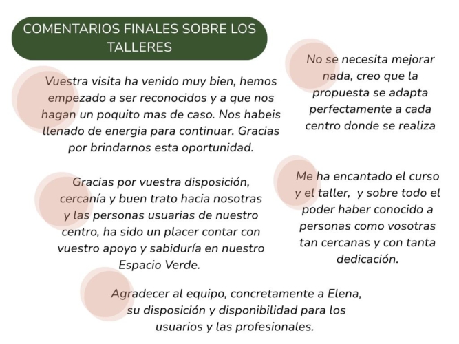 “La reflexión después del curso es ver, con más fuerza, el potencial a nivel terapéutico y de intervención en diferentes áreas con las personas usuarias del centro.”